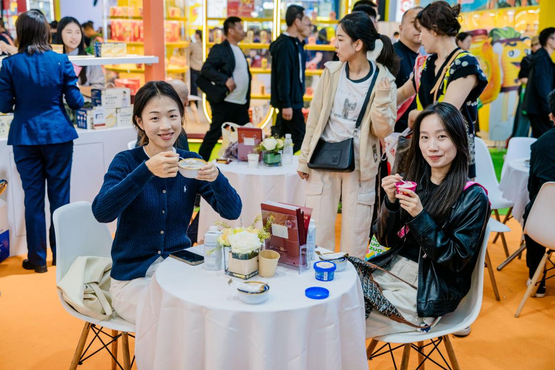 圖:參觀者品鑒燕之屋燕窩產(chǎn)品